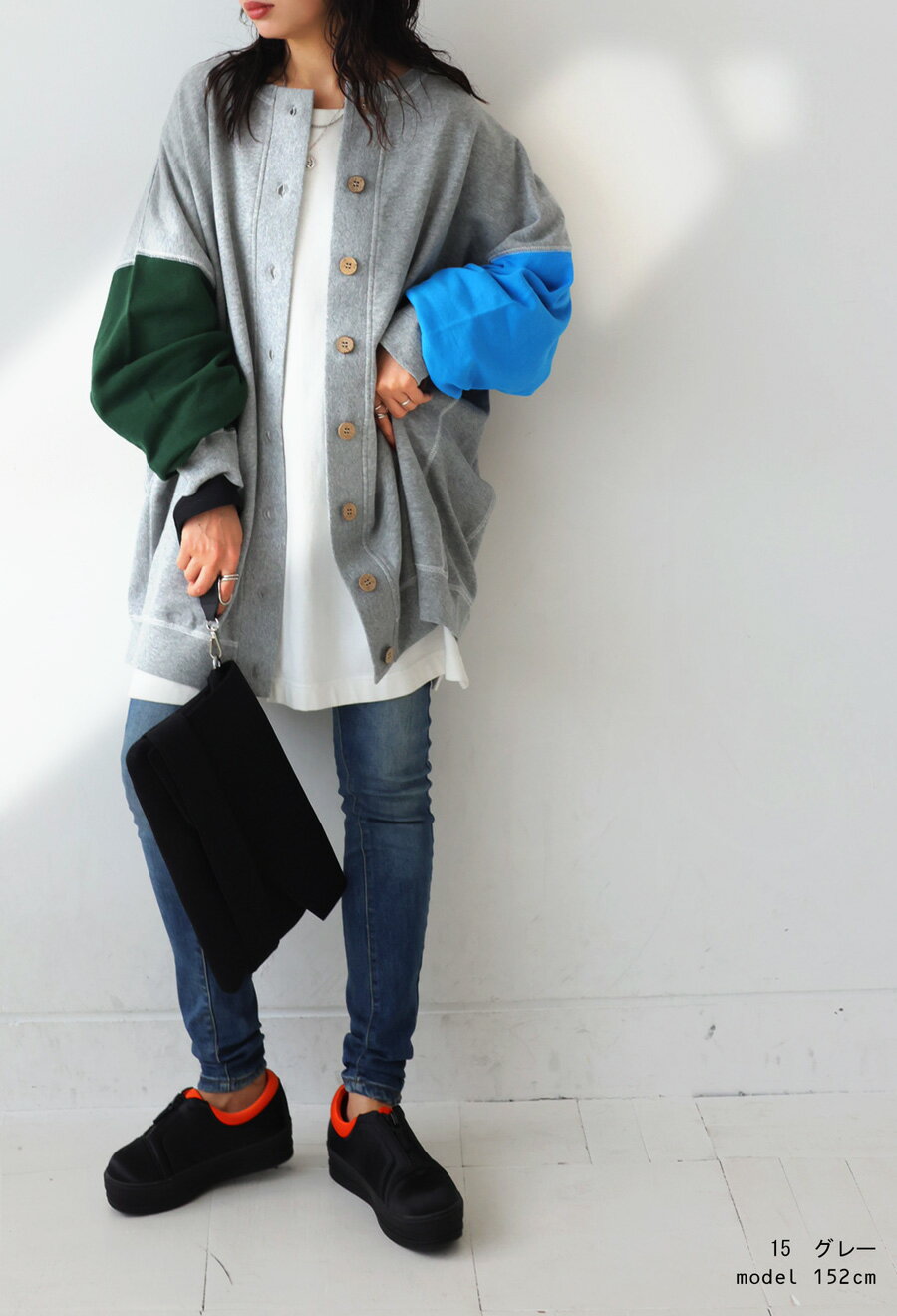 スウェットのような裏毛素材を使用しているので、気負わずカジュアルに着られるのが嬉しいポイント。通気性が良くて丈夫な綿100%のカーディガンだから、デイリー使いにぴったり!たっぷりとした身幅とドロップショルダーで、リラックス感のある着こなしが楽しめます。